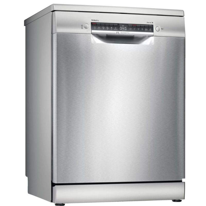 Szabadonálló mosogatógép - Serie6 - Home Connect - Nemesacél - 14 teríték - Energiaosztály:A - 6 program - 5 opció - Nagyméretű LED kijelző - Nyomógombos vezérlés - PerfectDry Zeolith+EfficientDry szárítás - Flex kosárrendszer - 9,5 liter/ciklus - 44 dB(A) re 1 pW - Programok: Eco 50°C, Auto 45-65°C, Intenzív 70°C, Rövid 60°C, Silence 50°C, Favourite/Előöblítés - Opciók: Időzítés (24h), Extra szárítás, Féltöltet, SpeedPerfect +, MachineCare, További opciók a HC alkalmazásban - Kijelzés: Só és öblítőszer- hiány, Maradék-idő - Felszereltség: AquaStop, EcoSilence Drive , AquaSensor, Töltöttség szenzor, Háromszoros szűrő rendszer, Regeneráló elektronika, Üvegvédelmi rendszer, DosageAssist, Elektronikus nyomógombzár - Kosárrendszer: Váltókar technika, Állítható felső kosár (Rackmatic), Lehajtható elemek az alsó kosárban (2db), Lehajtható elemek a felső kosárban (2db), Lehajtható pohártartó az alsó kosárban (2db), Lehajtható pohártartó a felső kosárban (2db), Kosármegállító ütközők, Alacsony súrlódású kerekek az alsó kosárban, Alacsony súrlódású kihúzórendszer a felső kosárban - Méretek (mm, ma x szé x mé):845x600x600 - Állítható lábak(mm): max. 20
