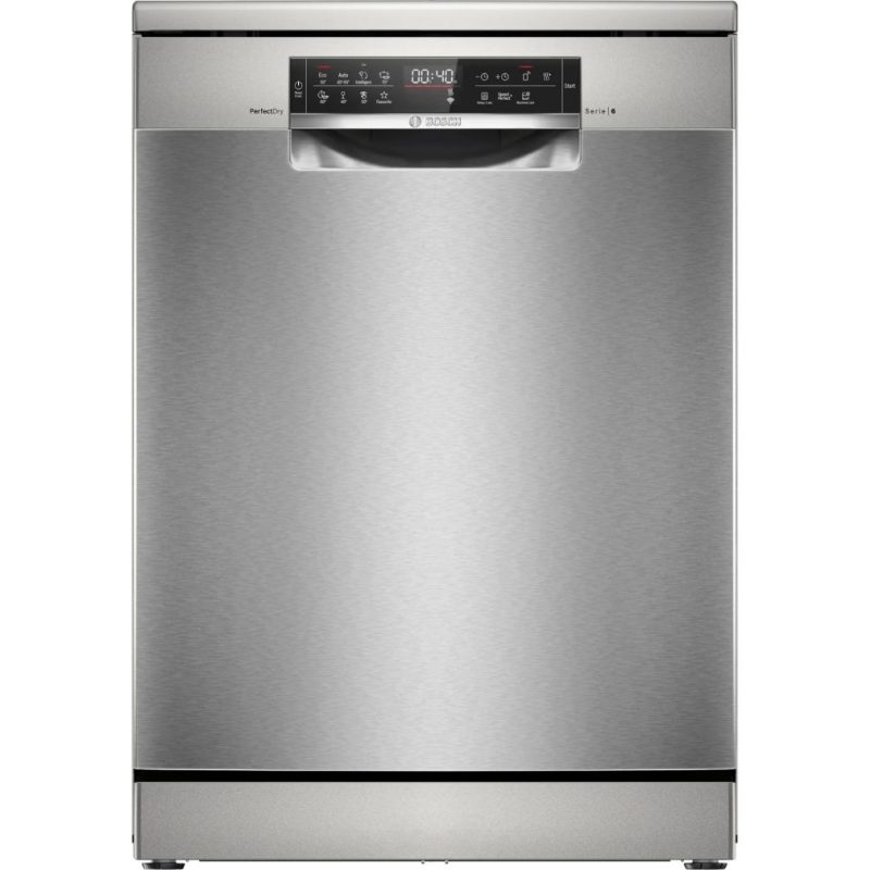 Szabadonálló mosogatógép - Serie6 - Home Connect - Nemesacél - 14 teríték - Energiaosztály:B - 8 program - 4 opció - Nagyméretű LCD kijelző - Érintőgombos vezérlés - PerfectDry Zeolith szárítás - MaxFlex kosárrendszer - VarioDrawer - 9 liter/ciklus - 40 dB(A) re 1 pW - Programok: Eco 50°C, Auto 45-65°C, Intenzív 70°C, Rövid 60°C, Glass 40°C, Silence 50°C, Favourite/Előöblítés - Opciók: Időzítés (24h), Extra szárítás, IntenzívZóna, SpeedPerfect +, MachineCare, További opciók a HC alkalmazásban - Kijelzés: Só és öblítőszer- hiány, Maradék-idő - Felszereltség: AquaStop, EcoSilence Drive , AquaSensor, Töltöttség szenzor, Háromszoros szűrő rendszer, Regeneráló elektronika, Belső világítás, Üvegvédelmi rendszer, DosageAssist, Elektronikus nyomógombzár - Kosárrendszer: Váltókar technika, Állítható felső kosár (Rackmatic), Lehajtható elemek az alsó kosárban (6db), Lehajtható elemek a felső kosárban (2db), Lehajtható pohártartó az alsó kosárban (2db), Lehajtható pohártartó a felső kosárban (2db), Kosármegállító ütközők, Alacsony súrlódású kerekek az alsó kosárban, EasySlide kihúzórendszer a felső kosárban - Méretek (mm, ma x szé x mé):845x600x600 - Állítható lábak(mm): max. 20