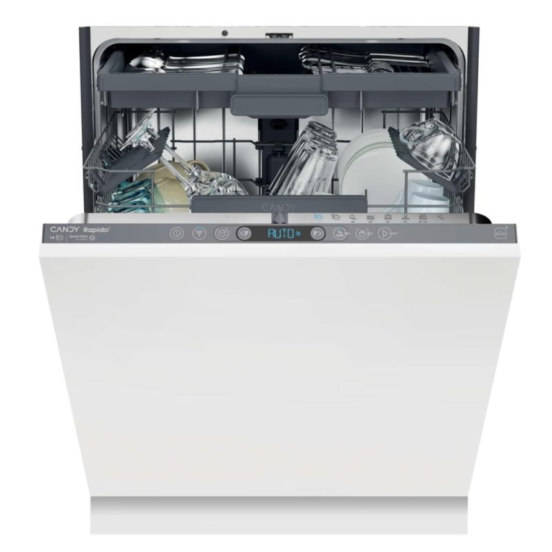 Az intelligens ajtónyitó rendszer az új Candy Rapido' összes mosási ciklusánál választható. A szárítási fázis során az ajtó néhány centiméterre automatikusan kinyílik, ezzel segíti a levegő keringését a mosogatógépben, hogy lehetővé tegye az edények természetes száradását. A kiválasztott ciklus időtartama megváltozik, ami optimalizálja az öblítési fázis során használt hőmérsékletet, és jelentősen csökkenti az energiafogyasztást.