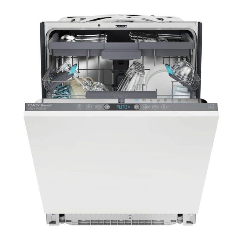 Az intelligens ajtónyitó rendszer az új Candy Rapido' összes mosási ciklusánál választható. A szárítási fázis során az ajtó néhány centiméterre automatikusan kinyílik, ezzel segíti a levegő keringését a mosogatógépben, hogy lehetővé tegye az edények természetes száradását. A kiválasztott ciklus időtartama megváltozik, ami optimalizálja az öblítési fázis során használt hőmérsékletet, és jelentősen csökkenti az energiafogyasztást.