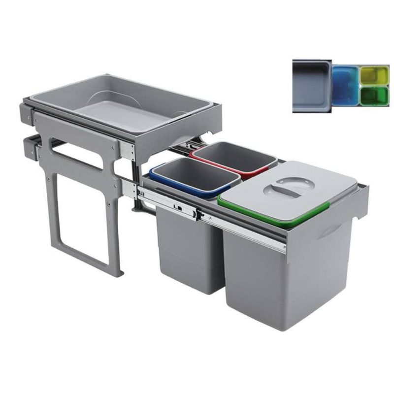Szekrénybe szerelhető, teljesen kihúzható rendszer, szelektív hulladékgyűjtéshez.