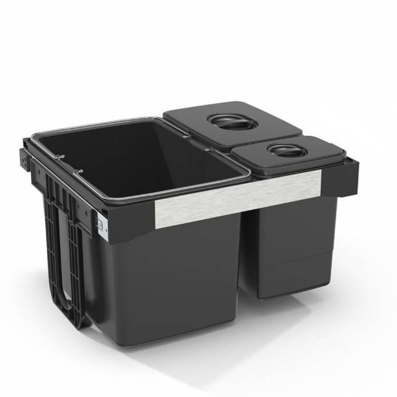 Szekrénybe szerelhető, teljesen kihúzható hulladékgyűjtő rendszer, szelektív hulladékgyűjtéshez.