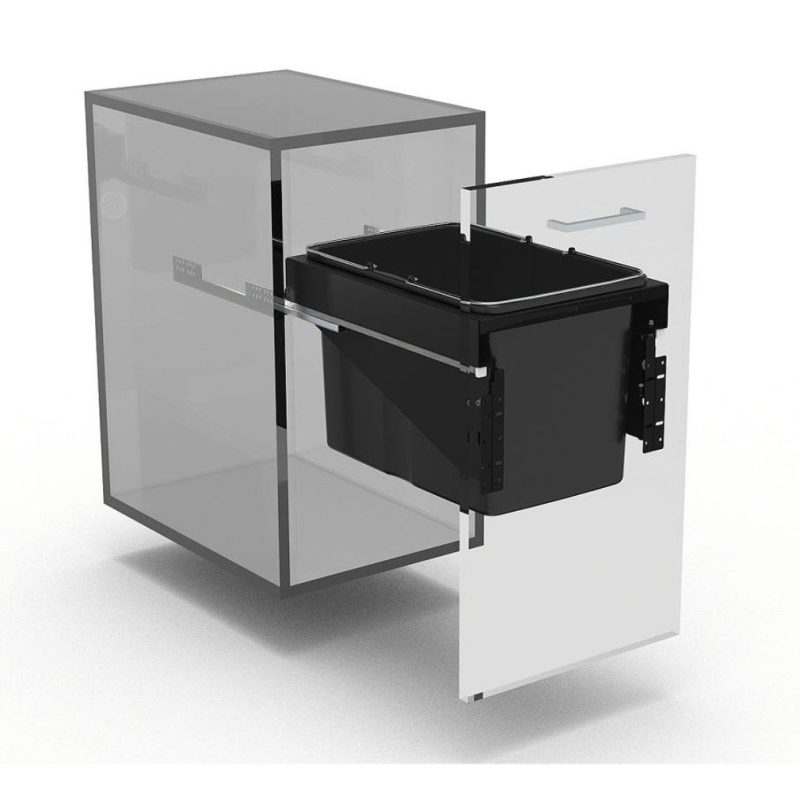 szelektív hulladékgyűjtési lehetőség, rugalmasan összeállítható kombinációk, optimalizált helykihasználás, könnyen kivehető akár mosogatógépben is mosható fedeles szemetes vödrök, stabilitás a vödröket tartó keretmegoldásnak köszönhetően, feketére festett oldalsó fém tartólemezek, egyszerű és gyors telepítés