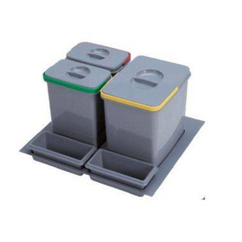 szelektív hulladékgyűjtési lehetőség, rugalmasan összeállítható kombinációk, optimalizált helykihasználás, könnyen kivehető akár mosogatógépben is mosható fedeles szemetes vödrök és tálcák, színes ergonomikus fogantyúk, egyszerű és gyors telepítés, BLUM – HETTICH – GRASS fiókhoz kompatibilis