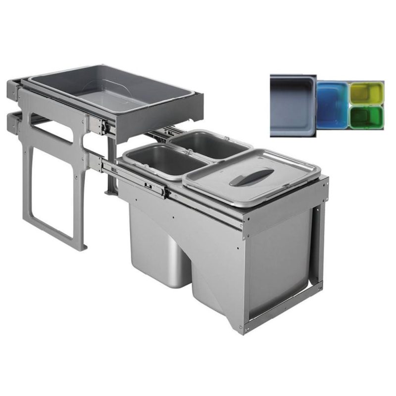 Ajtófrontra szerelhető, teljesen kihúzható rendszer, szelektív hulladékgyűjtéshez.