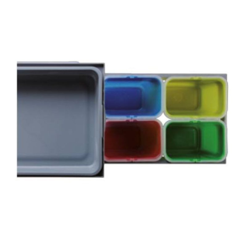 szelektív hulladékgyűjtési lehetőség, rugalmasan összeállítható kombinációk, optimalizált helykihasználás, teljesen kihúzható rendszer, 30 kg-ig terhelhető horganyzott acél sínek, könnyen kivehető akár mosogatógépben is mosható szemetes vödrök és fedelek, stabilitás a szemetes vödröket tartó keretmegoldásnak köszönhetően, vasból készült festett első tartó keret, többcélú tálca, egyszerű és gyors telepítés
