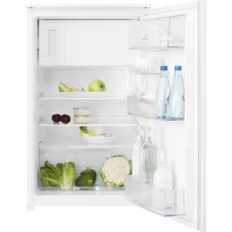 Electrolux LFB2AE88S1 Beépíthető Egyajtós hűtőszekrény fagyasztóval, E,110L/10L,Nofrost nélkül,36 dB,Szél: 54.8 cm,Mag: 87.3 cm,