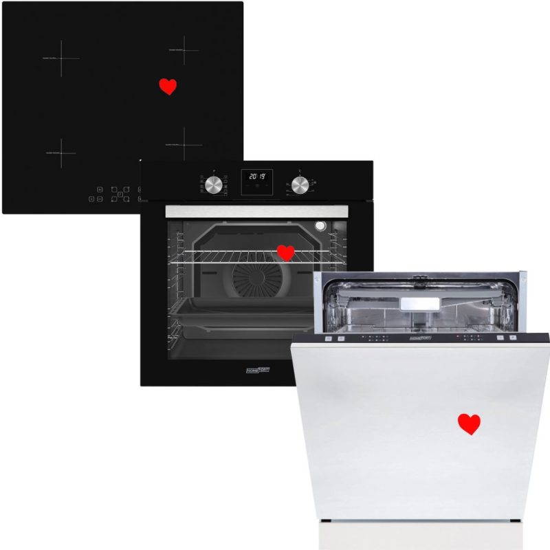 HOMEFORT HSB64DGB Beépíthető Sütő + HOMEFORT HFBI64T0B Beépíthető Indukciós főzőlap + HOMEFORT HMGB0661B Beépíthető mosogatógép
