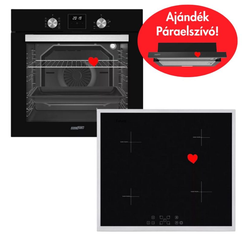 HOMEFORT HSB64DGB BeépíthetőSütő+ HOMEFORT HFBI64T2B indukciós főzőlap most ajándék HOMEFORT HPK611B kihúzható páraelszívóval lehet az Öné!