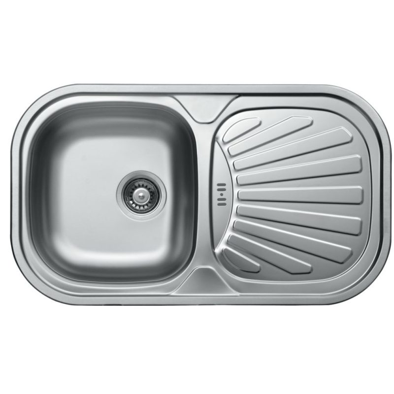 LIVINOX egymedencés, csepptálcás, szövetmintás, rozsdamentes acél mosogató, forgatható, 3 1/2" lefolyógarnitúrával. 50 cm-es szekrénymérethez. Mérete: 830 x 480 mm, medence mélység: 165 mm. Bűzelzáró szifon alaptartozék.