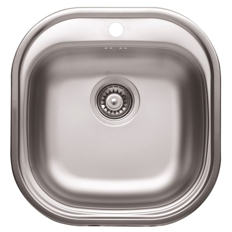 LIVINOX egymedencés, natúr, rozsdamentes acél mosogató, középső csaplyukkal, 3 1/2" lefolyógarnitúrával. 40 cm-es szekrénymérethez. Mérete: 460 x 480 mm, medence mélység: 165 mm. Bűzelzáró szifon alaptartozék.
