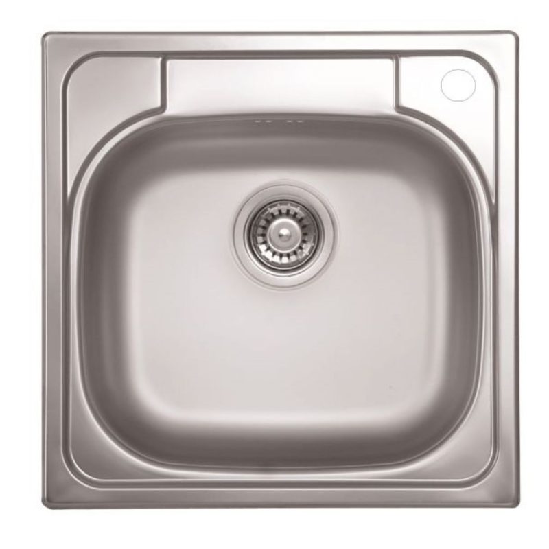 LIVINOX egymedencés, natúr, rozsdamentes acél panel mosogató, jobboldali csaplyukkal, 3 1/2" lefolyógarnitúrával. 45 cm-es szekrénymérethez. Mérete: 480 x 480 mm, medence mélység: 150 mm. Bűzelzáró szifon alaptartozék.