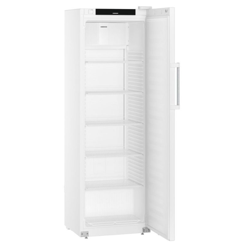 bruttó 420 literes hűtőszekrény; ventilációs hűtési rendszer; zárható teli ajtó; hűtési tartomány: +1/+15°C között; 3 fokozatban állítható páratartalom; SuperCool funkció; ajtóba integrált érintőgombos monokróm kijelző; digitális hőmérsékletkijelzés; optikai és akusztikus riasztási funkciók: eltérő hőmérséklet, ajtó nyitva maradás és áramkimaradás esetén, az áramellátás helyreállásával; integrált adatmemória: elmúlt időszak (kb. 42 nap) min/max. hőmérsékleti értékeinek eltárolása és kijelzőn történő megjelenítése; billentyűzár funkció; kívül fehér színű porszórt acél burkolat; egy darabból készült, hőformázott, fehér színű polisztirol (környezetbarát) belső burkolat; 5 db megerősített, 460x423 mm méretű, fehér színű védőbevonatos acél rácspolc, STOP funkcióval; padlórács; a polcok magassága 35 mm-ként állítható; polconkénti terhelhetőség: max. 45 kg; az ajtó 90°-os nyitási szög felett nyitva marad, ez alatt önműködően csukódik és nyitásának iránya megfordítható; higiénikus, cserélhető ajtószigetelés; ergonomikus alumínium fogantyú; automatikus leolvasztás; szintező talpak; FCKW-FKW mentes hűtőközeg (R 600a) és falszigetelés (45 mm); külső hőmérséklet: +10/+40°C között - 5. klímaosztály; FFFsg 4001 mélyhűtővel párba állítható; éves energiafogyasztás: 514 kWh; C energiahatékonysági osztály