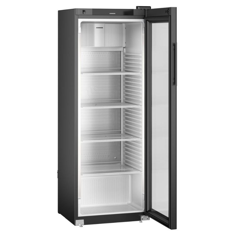 bruttó 347 literes hűtőszekrény (megnövelt teljesítmény, féltöltéses teszt, K2 - 2,5°C - hőmérsékleti osztály); ventilációs hűtési rendszer; elektronikusan zárható SwingLine hőszigetelt üveg ajtó (ESG biztonsági üveg), aluminium profil; kapcsolható belső, kétoldali, szabályozható fényerejű LED világítás (teljes magasságban); hűtési tartomány: -2/+15°C között; érintőgombos vezérlőelektronika (EMS - Energy Management System); digitális hőmérsékletkijelzés; optikai és akusztikus riasztási funkciók: túl magas/alacsony belső hőmérséklet és ajtó nyitva maradás esetén (villógó világítás); kompresszor hűtő ventilátor; kívül fekete színű porszórt acél burkolat; egy darabból készült, hőformázott, szürke színű polisztirol (környezetbarát) belső burkolat; 4 db átlátszó védőbevonatos megerősített acél rácspolc, STOP funkcióval és leesésgátlóval; a polcok magassága 35 mm-ként állítható; polconkénti terhelhetőség: max. 45 kg; kapacitás: 414 db 0,33l aludoboz (facing: 7), 207 db 0,5l PET (facing: 7), 102 db 1l PET (facing: 7), 80 db 1,5l PET palack (facing: 7); az ajtó önműködően csukódik (90°-tól nyitva marad) és nyitásának iránya megfordítható; higiénikus, cserélhető ajtószigetelés; ajtóprofilba süllyesztett fogantyú; automatikus leolvasztás; 1 pár első vízszintező talp; FCKW-FKW mentes hűtőközeg (R 600a) és falszigetelés (50 mm); külső hőmérséklet: +10/+40°C között - CC2 klímaosztály; éves energiafogyasztás: 501 kWh; C energiahatékonysági osztály