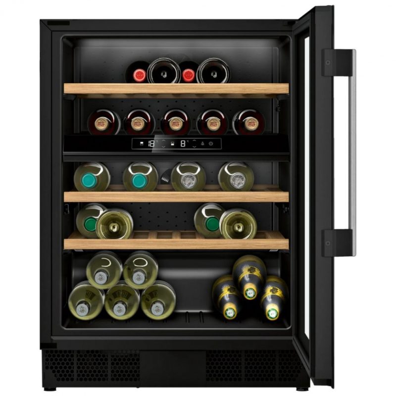 Ez a beépíthető borhűtő bambusz polcokkal 1 polcot teleszkópos síneken és 2 egyedi hőmérsékleti zónát kínál.