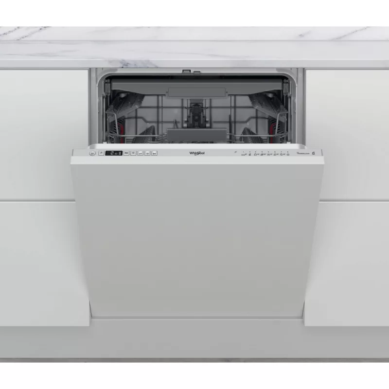 Whirlpool integrált mosogatógép jellemzői: ezüst szín. D energia minősítés a csökkentett energiafelhasználás érdekében.