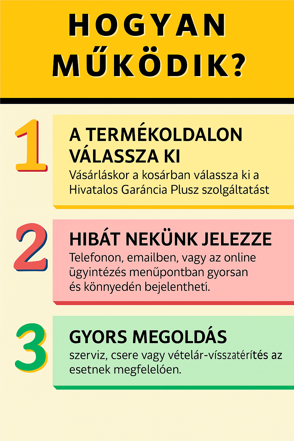 3️⃣ Gyors megoldás – szerviz, csere vagy vételár-visszatérítés az esetnek megfelelően